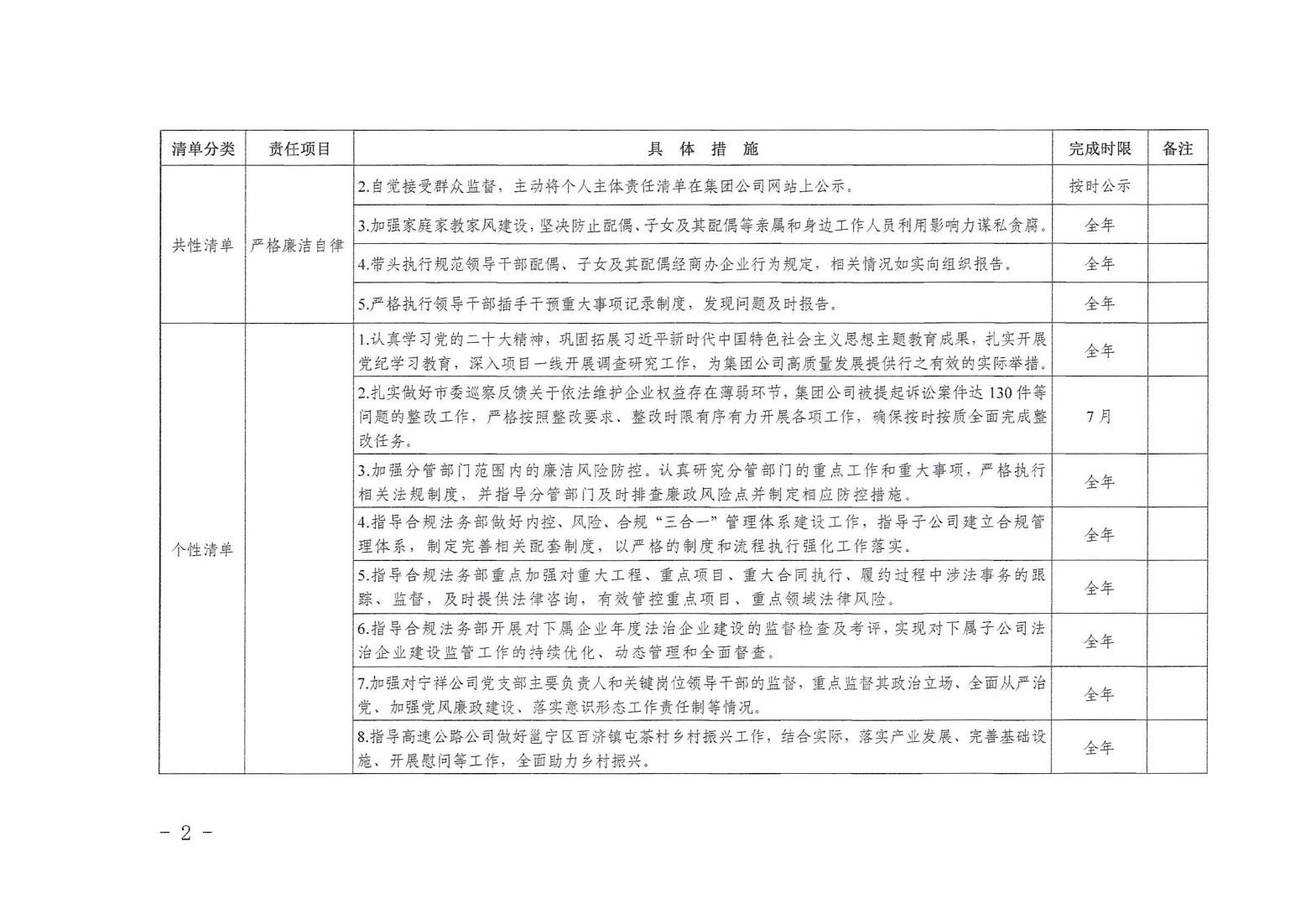 領導班子其他成員2024年度黨風廉政建設“一崗雙責”清單(三)