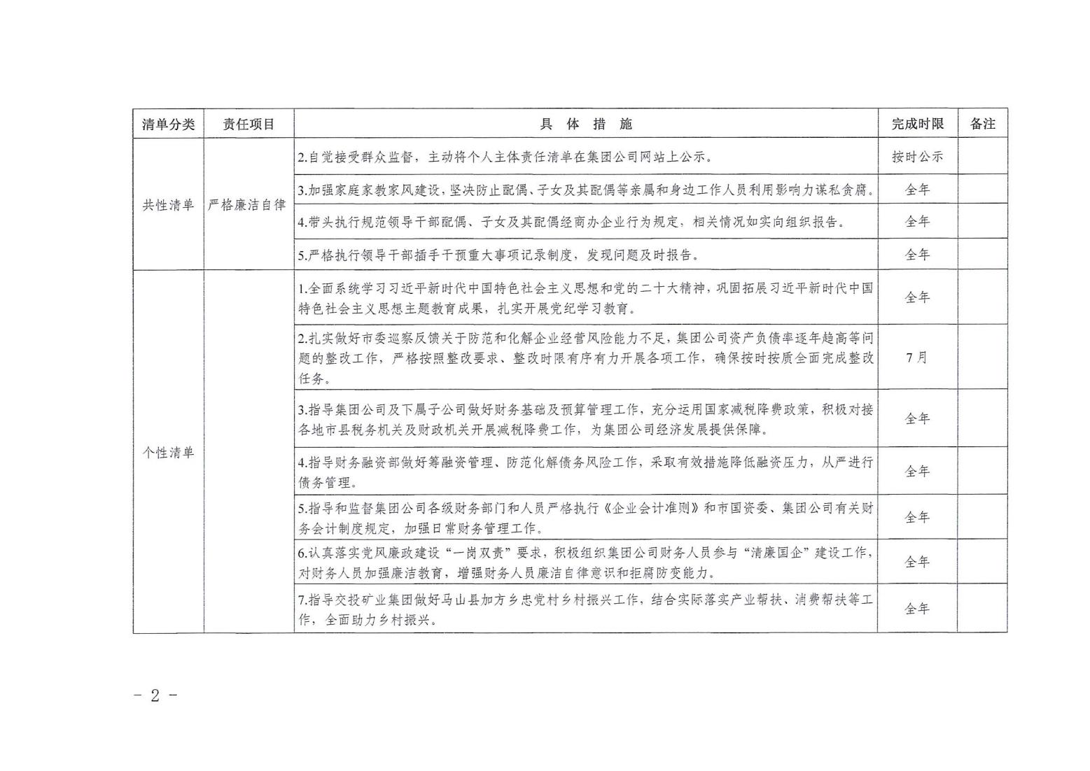 領導班子其他成員2024年度黨風廉政建設“一崗雙責”清單(六)