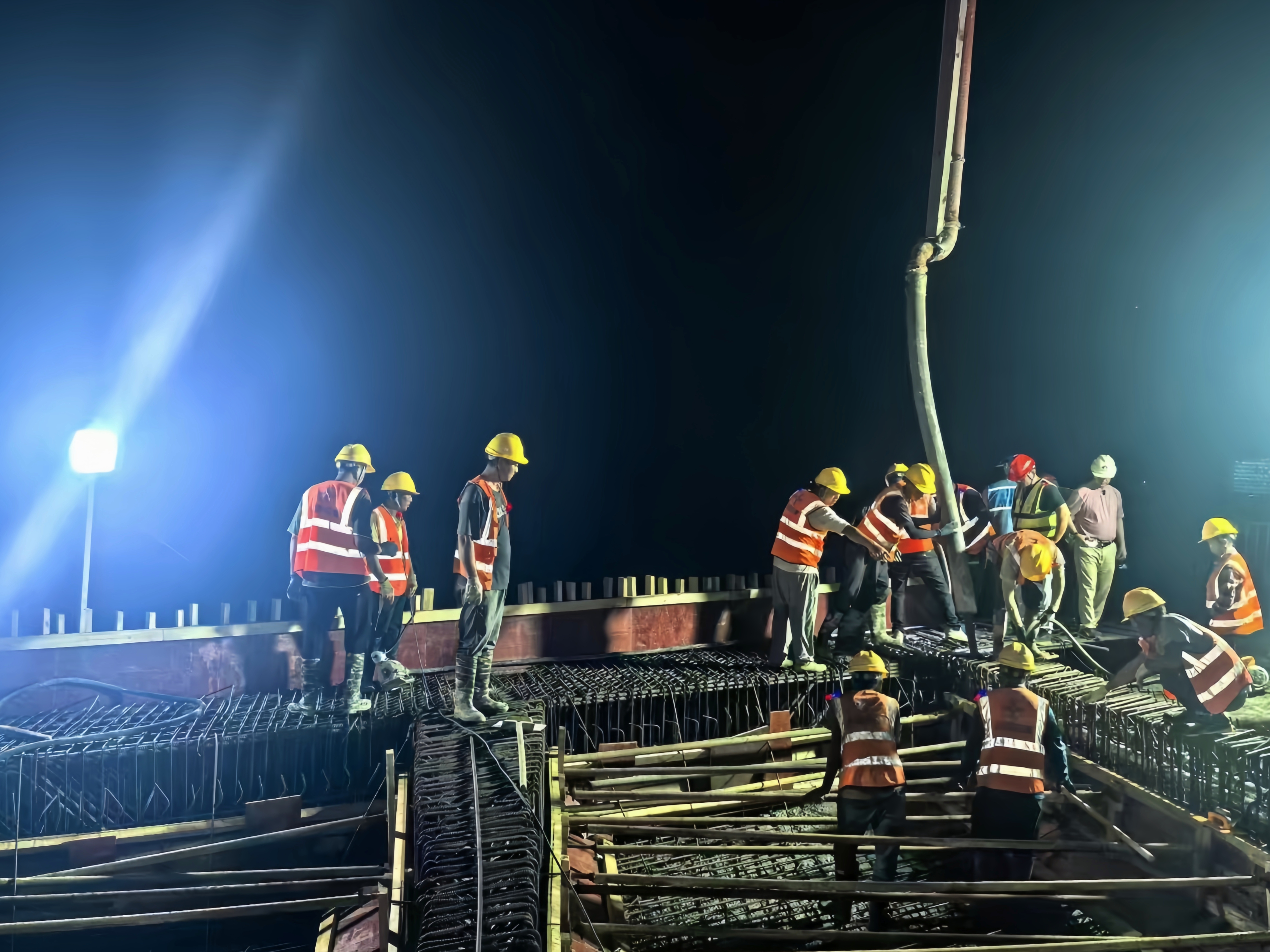 南寧南過境線(吳隆段)公路首件現(xiàn)澆箱 梁底腹板澆筑完成