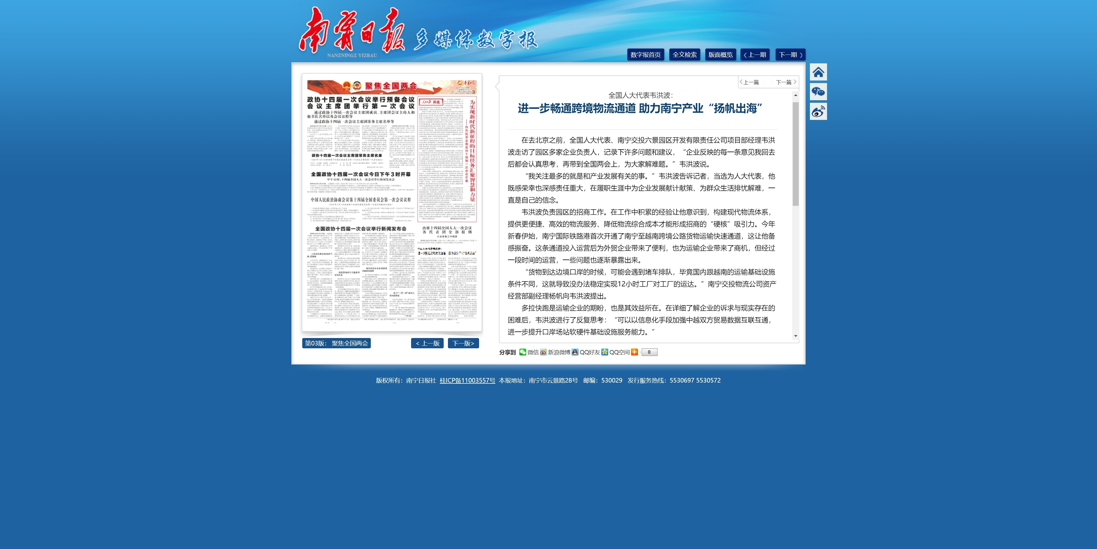 全國人大代表韋洪波:進(jìn)一步暢通跨境物流通道 助力南寧產(chǎn)業(yè)“揚(yáng)帆出?!?/div>
